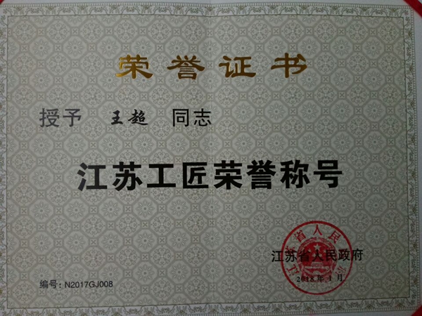 1月4日,在省政府表彰作出突出貢獻的優秀高技能人才會議上,在全省范圍內評選出11名“江蘇大工匠”、94名“江蘇工匠”。蘇舜公司王超同志被授予“江蘇工匠”榮譽稱號,是省農墾系統內唯一一名獲此殊榮的員工。