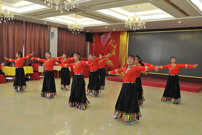 為展示淮海農場軍墾文化的魅力,體現農場退休職工的風采,春節前夕,由10名退休女職工組成起來的一支淮海農場老年舞蹈隊,在淮海職教中心西大廳特地編排了一場哈噠舞,特地邀請農場宣傳部門的技術人員,通過實時錄像并上傳網絡,讓廣大愛好舞蹈的網民可以觀看到由農場人自編自演的哈噠舞蹈。