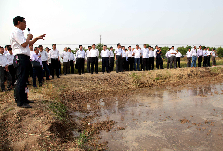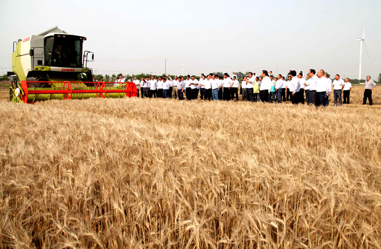 會后,胡兆輝、蘇志富率與會人員觀摩了黃海分公司農業生產,對黃海分公司農機農藝融合新技術的應用給予高度贊賞。