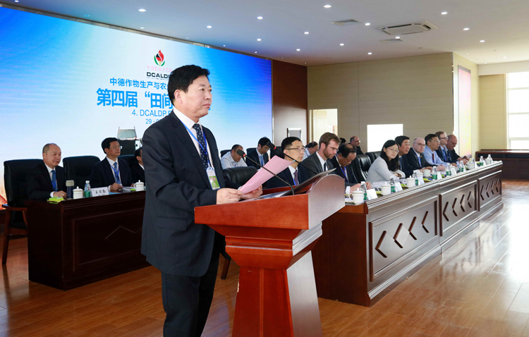 蘇志富在致辭中向中德雙方政府領(lǐng)導(dǎo)、農(nóng)業(yè)專家、項(xiàng)目合作企業(yè)及社會各界人士表示最衷心地感謝!要求項(xiàng)目二期繼續(xù)秉承“合作創(chuàng)新、成就未來”的發(fā)展理念,緊緊圍繞“綠色、有機(jī)、生態(tài)”農(nóng)業(yè)的可持續(xù)發(fā)展目標(biāo),建立起中德作物生產(chǎn)與農(nóng)業(yè)技術(shù)合作創(chuàng)新平臺、中德農(nóng)機(jī)農(nóng)藝培訓(xùn)中心平臺和中德合作機(jī)械化示范基地。