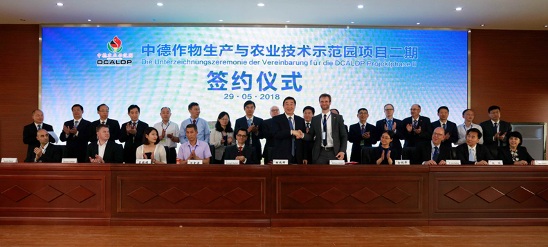 5月29日,中德作物生產(chǎn)與農(nóng)業(yè)技術(shù)示范園第四屆“田間日”活動暨項(xiàng)目二期簽約儀式在蘇墾農(nóng)發(fā)黃海分公司舉行。集團(tuán)公司總經(jīng)理、蘇墾農(nóng)發(fā)股份公司董事長胡兆輝出席并代表蘇墾農(nóng)發(fā)股份公司與與德國GFA咨詢集團(tuán)有限公司項(xiàng)目經(jīng)理安德列斯•伽木措先生及德國9家合作企業(yè)代表簽約。集團(tuán)公司紀(jì)委書記章朝陽出席并觀摩田間活動。集團(tuán)公司黨委委員、蘇墾農(nóng)發(fā)股份公司總裁蘇志富致辭。德國聯(lián)邦食品與農(nóng)業(yè)部國際合作與世界營養(yǎng)司副司長弗里德里希•瓦克行先生、中國農(nóng)業(yè)農(nóng)村部國際合作司歐洲處副處長劉江女士分別講話。中德示范園主任王亦勤主持并與示范園德方負(fù)責(zé)人托馬斯•伊利斯分別從中德雙方不同的角度做一期成果匯報與二期項(xiàng)目規(guī)劃展望黃海農(nóng)場有限公司董事長、總經(jīng)理單祥忠等出席會議。