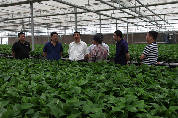 在蘇墾農(nóng)友種苗公司的黃金瓜和“一宅一花”項(xiàng)目的基地內(nèi),胡兆輝看到農(nóng)業(yè)技術(shù)人員吃住在田間地頭十分欣慰。劉衛(wèi)華在匯報時說,目前300畝黃金瓜項(xiàng)目運(yùn)行良好,遇到的技術(shù)難題都已克服,陸續(xù)開始采摘上市銷售,良好的品質(zhì)與口感深受消費(fèi)者的青睞。“一宅一花”的培育和養(yǎng)殖都十分順利,正準(zhǔn)備進(jìn)一步擴(kuò)大培育面積。胡總對農(nóng)友種苗公司充分發(fā)揚(yáng)農(nóng)墾人艱苦奮斗的軍墾精神表示肯定。他指出,農(nóng)友種苗的項(xiàng)目是集團(tuán)領(lǐng)導(dǎo)十分關(guān)心和關(guān)注的產(chǎn)業(yè),要樹立信心和長遠(yuǎn)的發(fā)展眼光,做好與合作公司在技術(shù)與銷路方面的對接工作,確保黃金瓜和“一宅一花”項(xiàng)目取得實(shí)實(shí)在在的成效。