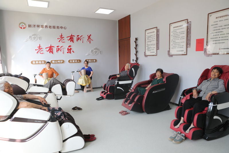 新洋積極應對養老服務新需求,投入600多萬元新建1128平方米的一體式綜合服務大廳,內設康復訓練室、理療室、兒童樂園、棋牌室、書畫閱覽室、綜合活動廳、助浴室以及餐廳等,在軟硬件投入、人員配備、管理服務、養老環境等多維度提質增效,收獲了轄區老人的高度好評。
