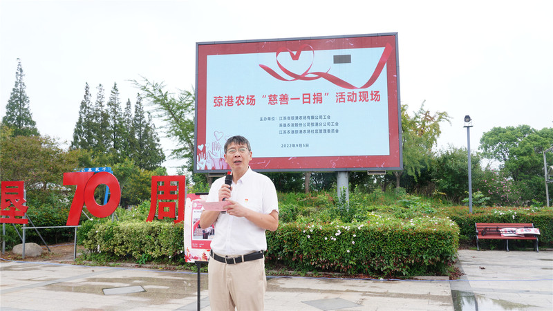 9月5日是全國第七個“中華慈善日”。今天上午,弶港農(nóng)場“慈善一日捐”集中募捐活動在農(nóng)和廣場舉行。農(nóng)場公司領(lǐng)導(dǎo)班子成員、農(nóng)場公司、分公司、社管會全體工作人員、居民代表共計200余人參加活動。