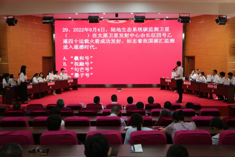 本次比賽分為兩個(gè)階段進(jìn)行,在6月25日的預(yù)賽中,全場(chǎng)18支代表隊(duì)進(jìn)行了筆試考核,通過(guò)每隊(duì)總比分,選出了今天6支參加決賽的隊(duì)伍。在主持人的宣布下,比賽正式拉開(kāi)帷幕。“請(qǐng)聽(tīng)題,黨的二十大報(bào)告指出……請(qǐng)開(kāi)始搶答。”“請(qǐng)1號(hào)臺(tái)答題,三號(hào)臺(tái)搶答犯規(guī)……”在現(xiàn)場(chǎng),6支代表隊(duì)“八仙過(guò)海各顯神通”,大家“邊賽邊學(xué)”、“以賽促學(xué)”,在必答題、搶答題和風(fēng)險(xiǎn)題3個(gè)環(huán)節(jié)上充分發(fā)揮團(tuán)隊(duì)力量,傾力配合。各支代表隊(duì)你追我趕,互不相讓,臺(tái)下觀眾也聚精會(huì)神,對(duì)著屏幕學(xué)習(xí)黨的二十大知識(shí),現(xiàn)場(chǎng)不時(shí)發(fā)出熱烈的掌聲。在每個(gè)環(huán)節(jié)休息階段,大會(huì)還組織開(kāi)展了現(xiàn)場(chǎng)互動(dòng)答題,并準(zhǔn)備了精美禮品。現(xiàn)場(chǎng)觀眾紛紛踴躍搶答,再度將本次競(jìng)賽活動(dòng)氣氛推向了頂峰。