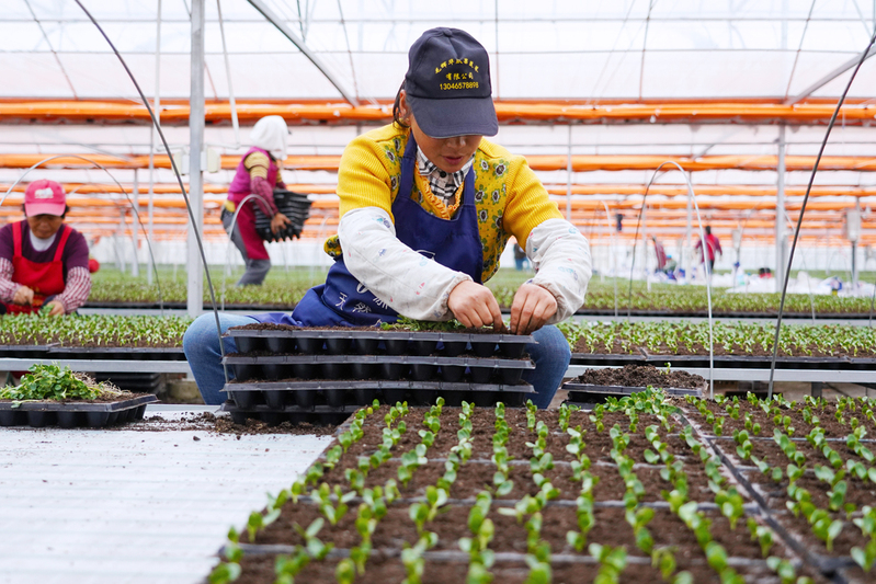 西瓜要想品質好,種苗最重要。天氣漸寒,弶港農場現代工廠化育苗基地內暖意融融,在電氣化智能溫室大棚里,工人們正忙著整理苗床,首批300萬株西瓜種苗一片綠意盎然。智能恒溫大棚升溫平穩、溫度均勻,有利于西瓜苗快速生長發育,出苗率可高達95%,移栽后成活力強,不僅可供應農場周邊瓜農,還遠銷浙江、安徽等地,全年可為瓜農提供高品質西瓜種苗1000萬株。
