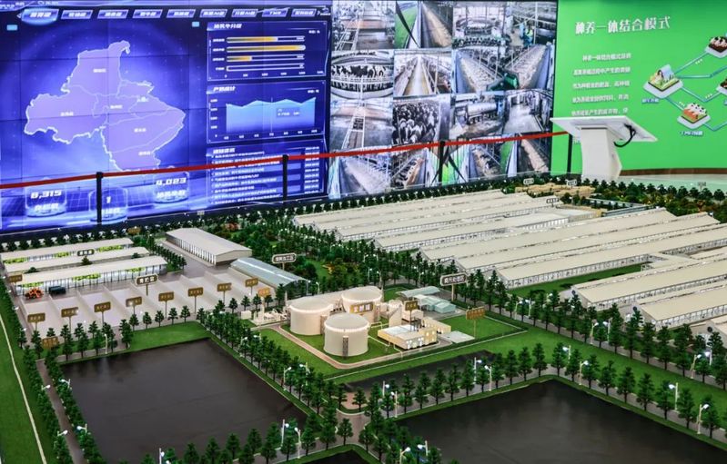 生態化發展加速轉型。牧場智慧生態系統的污水循環管理設備包含牧場污水管路3D圖與污水監測點位信息,實時監測牧場污水指標,并將數據同步上傳至環保部門,確保牧場水質監管到位。沼氣發電系統將標準化工藝處理糞污產生的沼氣用于發電,沼液利用后的沼渣作為牛床墊料的生產原料,不僅成本低,還有效降低了養殖風險。同時在場區配備廢氣檢測設備監測養殖氣體環境,配備消防監控設備監測飼草區與沼氣發電區域煙火狀況。智能生態系統采取糞污固體發酵、沼氣烘干回床、沼液還田方式,實現“變廢為寶”。對牧場糞污發酵后的液位進行采集,經過無害化處理后的沼液通過預設專用管道,在卷盤式噴灌機的運轉下自動噴灑在專屬消納用地的田間作物上,形成種養一體循環,有效提高了糞污綜合利用水平。
