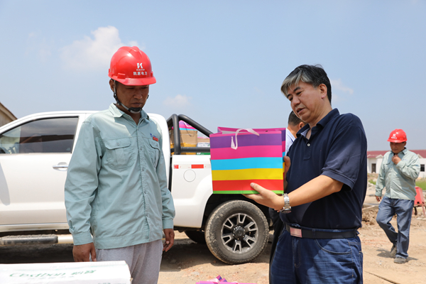 8月8日上午,烈日當頭,酷暑難耐,在東辛農場有限公司銀羽住宅新區供電線路鋪設現場,集團公司工會主席佟曉廷一行在東辛黨委書記韓中書、紀委書記王緒國、