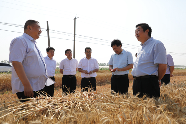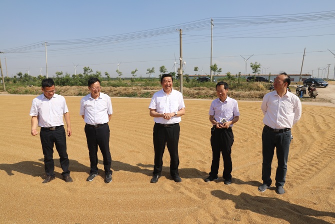 6月13日下午,集團公司總經理、蘇墾農發股份有限公司董事長胡兆輝到濱淮檢查指導工作。濱淮領導班子李德利、傅龍光、李文忠、馬傳武陪同并匯報工作。  胡兆輝一行先后深入七大隊收割現場、第三生產區場頭、