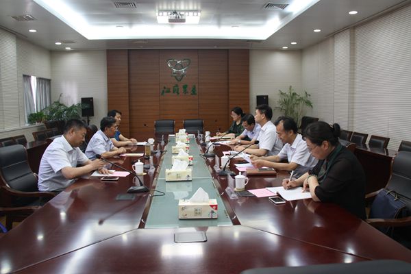 6月4日下午,集團公司黨委書記、董事長魏紅軍、總經理胡兆輝在機關十二樓會議室會見陜西省農墾集團黨委書記、董事長郭劍一行并座談。陜西省農墾集團黨委副書記、紀委書記、工會主席張富祥,集團公司黨委委員、