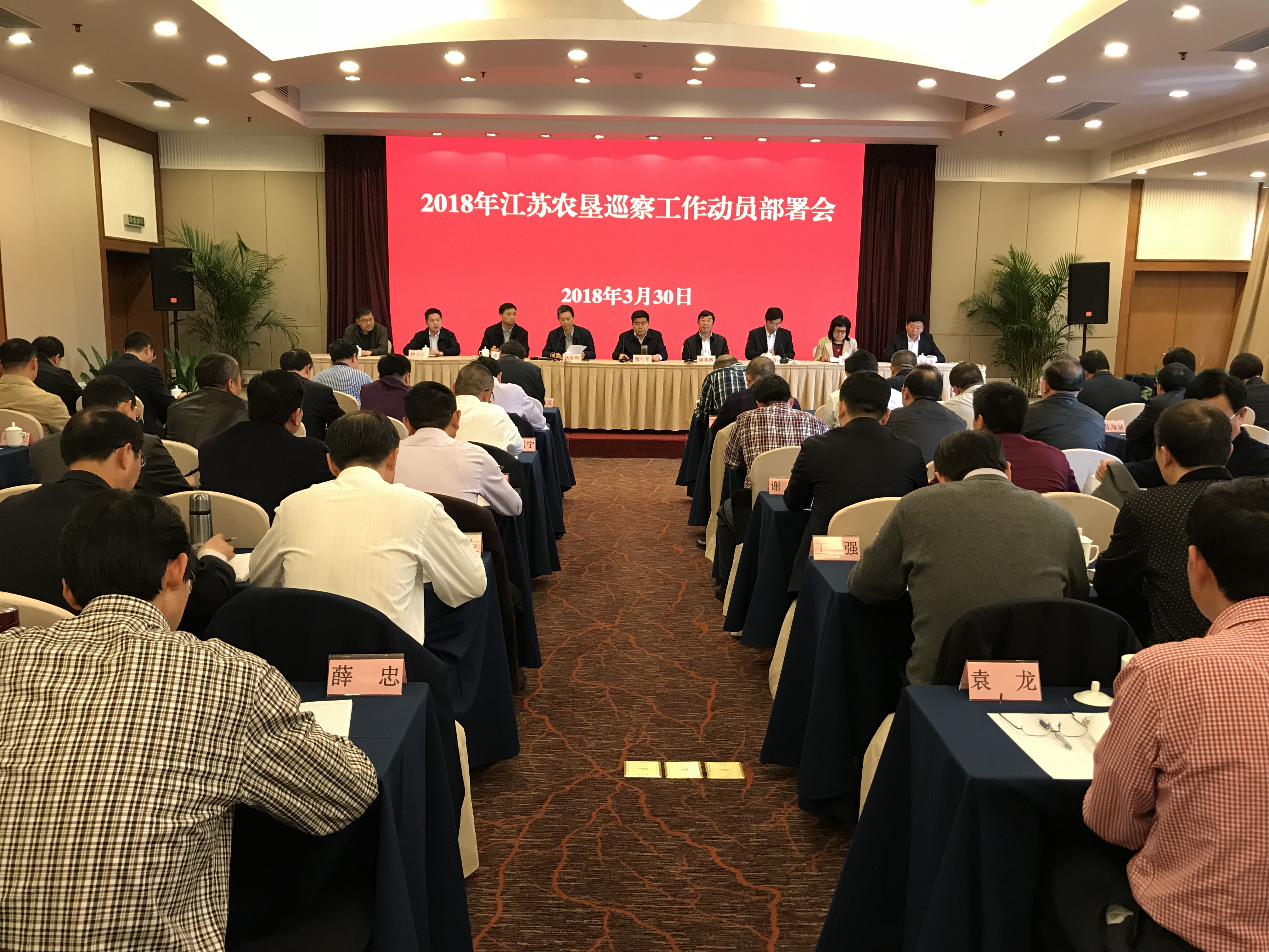 3月30日,2018年江蘇農墾巡察工作動員部署會在南京召開,深入學習貫徹習近平新時代中國特色社會主義思想和黨的十九大精神,傳達十九屆中央第一輪巡視工作和十三屆省委第四輪巡視工作動員部署會精神、省委