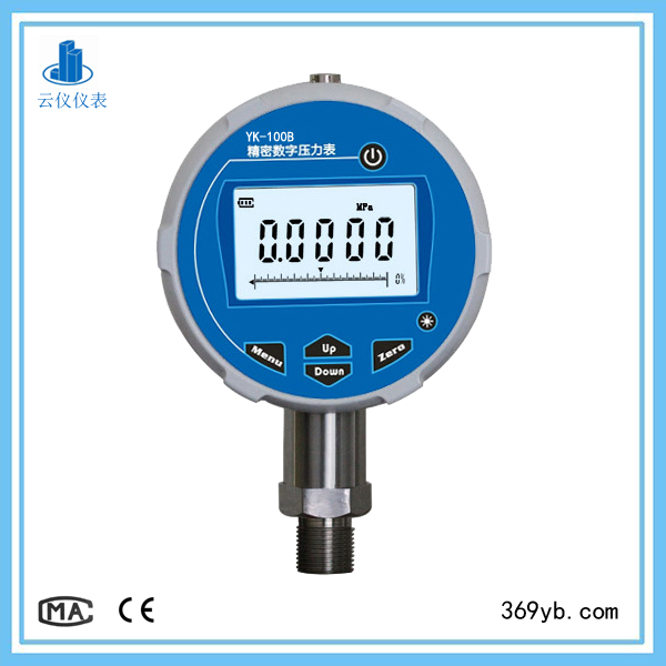 產品簡介:YK-100B計量專用高精度數字壓力表是專門為高要求壓力計量設計的高精度,高穩定性數字壓力表。該數字壓力表采用了石英諧振傳感器,其穩定性和壓力不確定度均明顯高于國內其他壓力計量儀表,可真正替代活塞式壓力計作為壓力基準的新一代數字壓力表,該數字壓力表為國內最新技術。