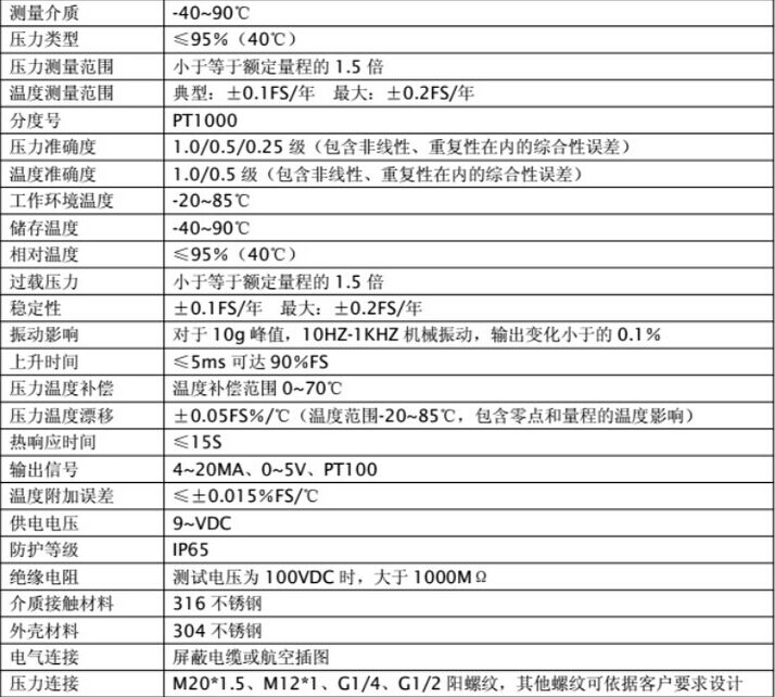 YK型壓力溫度一體化變送器內置溫度/壓力敏感元件,二路輸出互不影響,消耗一個傳感器的功率就可完成壓力和溫度的測量。廣泛用于科研、軍工、石化、電力、冶金機械及環保領域。如油井溫度壓力測量、柴油發動機共軌溫度壓力測量、注塑機械溫度壓力測量等。