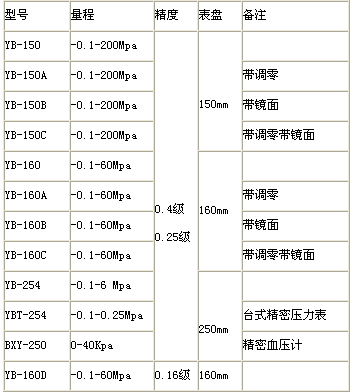 精密壓力表原稱標(biāo)準(zhǔn)壓力表,在我國也有多年的生產(chǎn)歷史,已有完整的系列和齊全的規(guī)格型號,執(zhí)行國家標(biāo)準(zhǔn)GB-1227和檢定規(guī)程JJG-49。其結(jié)構(gòu)簡單、性能穩(wěn)定、指示直觀形象及其高性價(jià)比和完整的系列使之在石油、化工等行業(yè),在生產(chǎn)和科學(xué)實(shí)驗(yàn)等環(huán)節(jié),在各級壓力量值傳遞和計(jì)量檢定部門有著相當(dāng)廣泛的應(yīng)用。