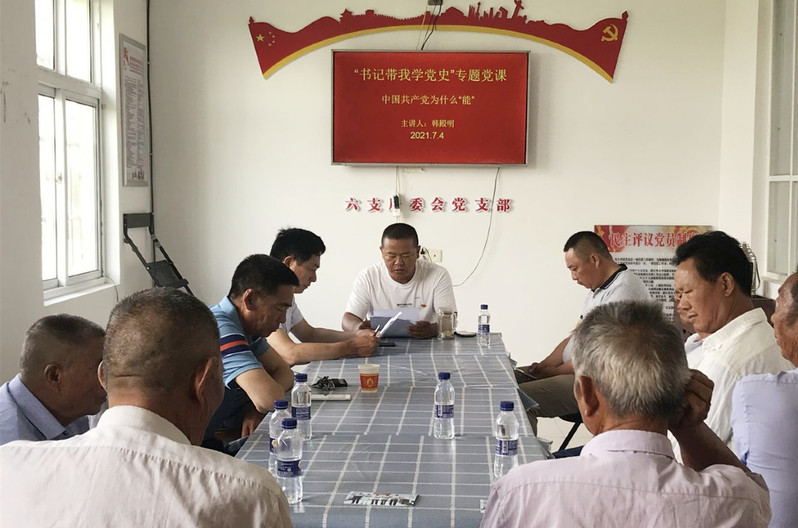 7月4日上午,白馬湖農場六支居委會黨支部舉行“書記帶我學黨史”專題黨課活動,由黨支部書記韓殿明以“中國共產黨為什么‘能’”為主題,為支部黨員開講黨課。