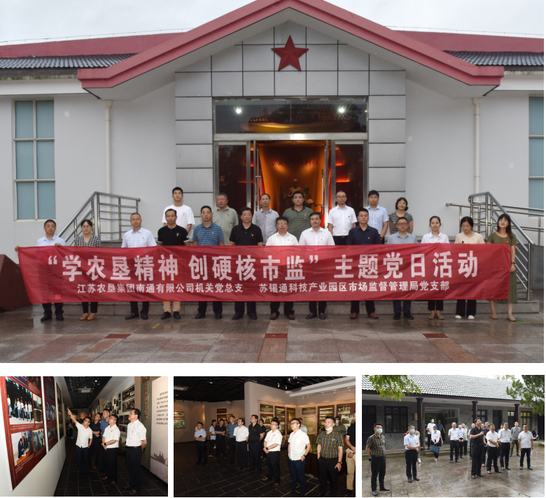 10月8日下午,南通公司機關黨總支與蘇錫通科技產業園區市場監督管理局黨支部等一行近30人赴農建四師暨淮海農場歷史陳列館,開展“學農墾精神 創硬核市監”黨建共建實境教育活動,南通公司黨委書記、董事長嚴忠和蘇錫通園區黨工委副書記、管委會副主任徐金龍分別帶隊參加了當天的主題黨日活動?;春^r場公司黨委書記、董事長、總經理單祥忠及相關部門人員陪同。