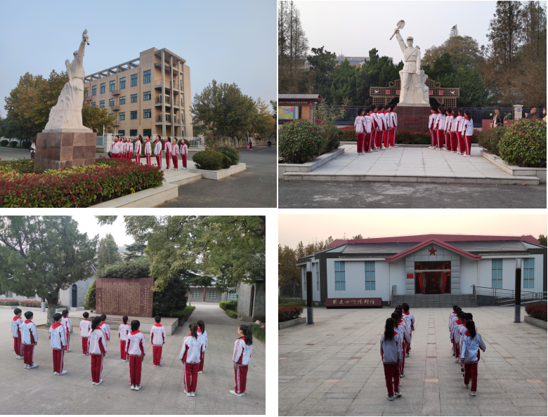 圖為外國語學校的學生列隊在瞻仰觀看農建四師紀念碑和毛澤東發布命令的碑文主走進農建四師陳列館前地的鏡頭。