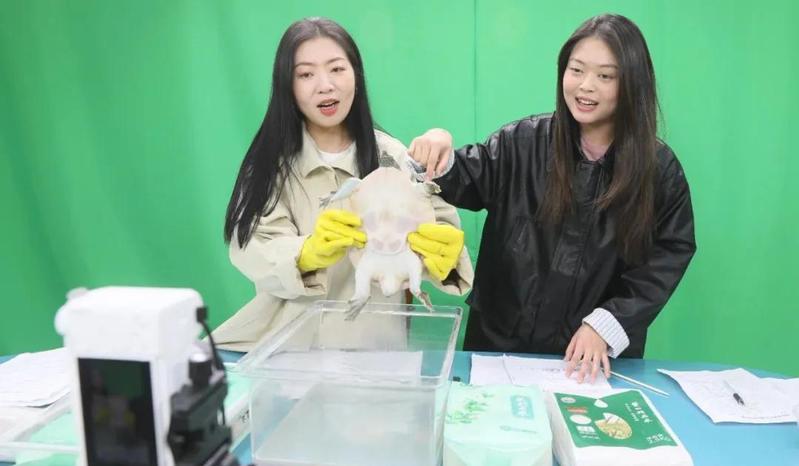 3月25日上午,淮海農場新媒體平臺的主播助播通過深入羊肚菌生產和加工現場,借助抖音直播平臺進行產品宣傳、推介,以吸引更多消費者的目光,提升淮海“墾一代”品牌知名度和銷量。圖為直播人員在菌菇產品加工現場開展直播。