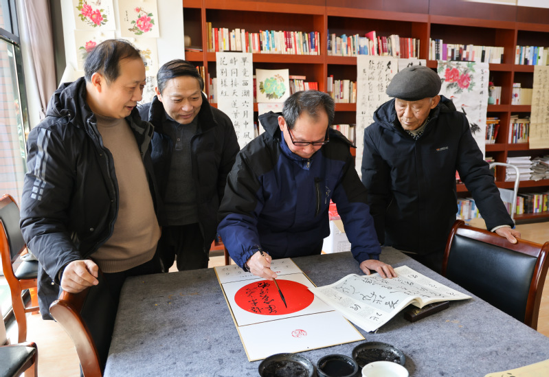 春節(jié)臨近,為弘揚中華優(yōu)秀傳統(tǒng)文化,傳遞新洋溫度,營造文明和諧、歡樂喜慶的節(jié)日氛圍,1月23日起,新洋農場居家養(yǎng)老新時代文明實踐站持續(xù)開展“筆墨凝書香 新年送祝福”活動,以書寫祝福對聯(lián)、制作書畫掛歷的方式迎接甲辰龍年。活動現(xiàn)場,居家養(yǎng)老新時代文明實踐站文化惠民志愿者服務隊的4位本土書畫家們聚精會神地在空白掛歷或紅紙上揮毫潑墨,或魏碑或行草,或寫意或工筆。不一會兒,“龍騰霄漢開好運,鵲立枝頭報好音”“龍騰瑞氣,鳳舞春風”等蘊含吉祥祝福的春聯(lián)躍然紙上,一幅幅風格迥異、格調高雅的書畫掛歷也制作完成了。書畫大師們將寫好的春聯(lián)小心地攤在地上,又為書畫掛歷穿上流蘇裝飾品并掛起晾干,一瞬間書畫室里翰墨飄香。一行行俊秀蒼勁的書法,一張張各不相同的“福”字,一幅幅惟妙惟肖的蠟梅報春國畫圖,一句句喜慶美好的祝福,既烘托了喜慶歡樂的氣氛,又表達了美好的祝愿和期盼,引得前來實踐站活動的群眾紛紛駐足欣賞,贊嘆不已。“春聯(lián)還是手寫的好,印刷的總感覺少了點年味,我每年都要來這里挑選幾副,沒想到今年還有書法繪畫掛歷,看著就叫人歡喜,朱老師,您記得給我留一幅啊。”城南居委會居民許秀麗一邊喜笑顏開地挑選自己喜愛的對聯(lián),一邊
