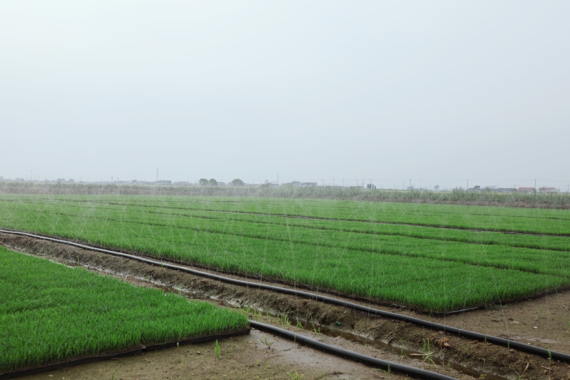 蘇墾農發東辛分公司托管基地的水稻秧田生機勃勃。今年,托管基地全部推廣微噴灌育秧技術,覆蓋1.2萬畝秧田,實現了技術全覆蓋,標志著傳統水稻育秧向節水高效模式的跨越。