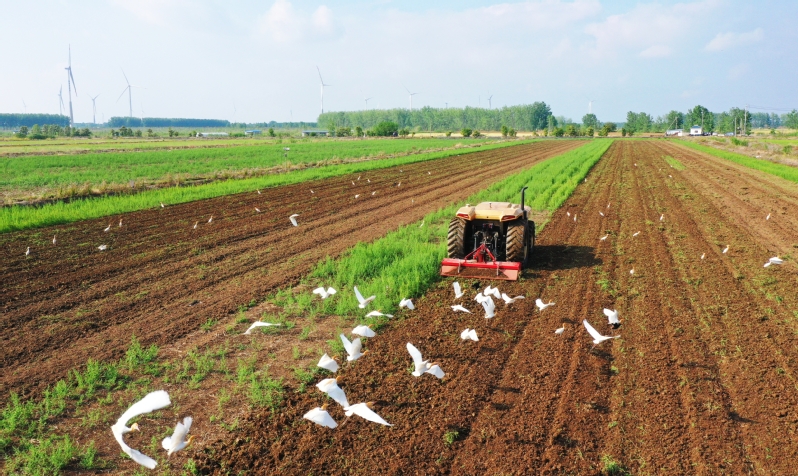 在蘇墾農發東辛分公司的田間地頭,大豆玉米復合種植精量播種機緩緩駛入麥田,有序完成播種、隔斷施肥等一體化作業。