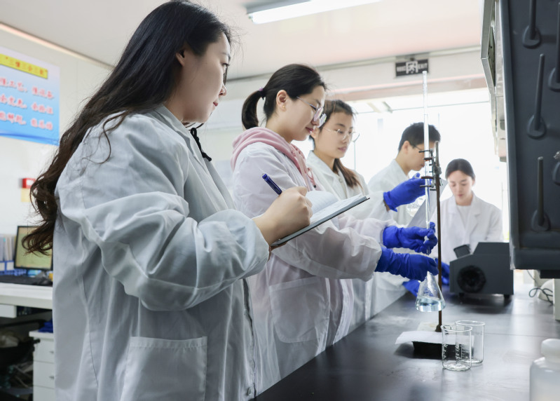 今年以來,勤奮藥業聚焦中鏈甘油三酯、賴氨酸、檸檬酸鈉等核心產品開展技術攻堅。圖為研發中心團隊正在實驗室研究硫酸鉀原料藥產品中起始物料的亞硫酸鹽檢測方法學開發。