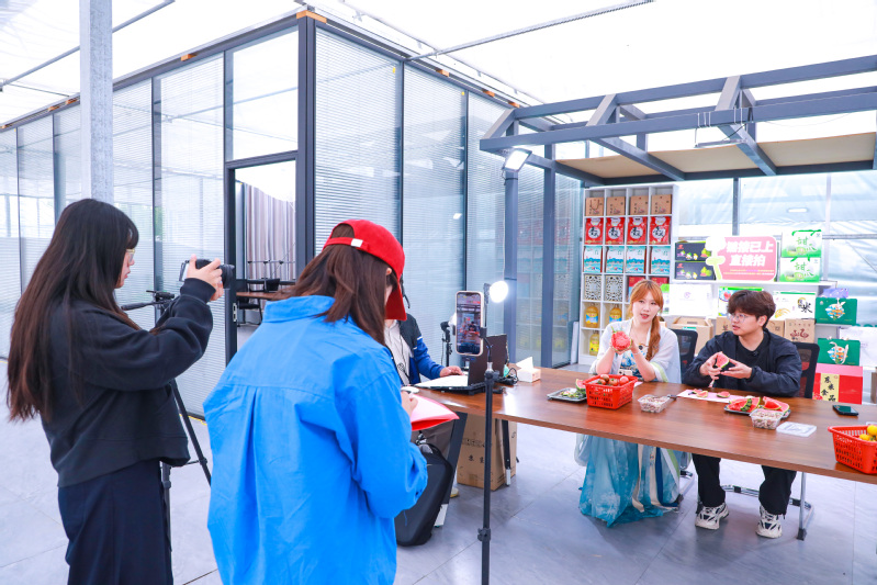 “家人們看這個切面,果肉晶瑩剔透,我給大家試吃一下……”在云臺農場興墾科技搭建的特色農產品直播間里,主播葉倩雯、陳恒嘯正熱情地介紹著剛上市的西瓜、桑葚等特色產品,直播間內不少網友下單購買。截至目前,云水灣濕地公園直播間本月線上直播收入達12400元,與4月相比大幅提升。